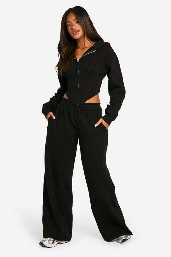 Trending Black Women's Plus Size Winter 2-Piece Corset Rib Insert Drawstring Hooded Breathable Tracksuit Set Hoodie Sweatpants