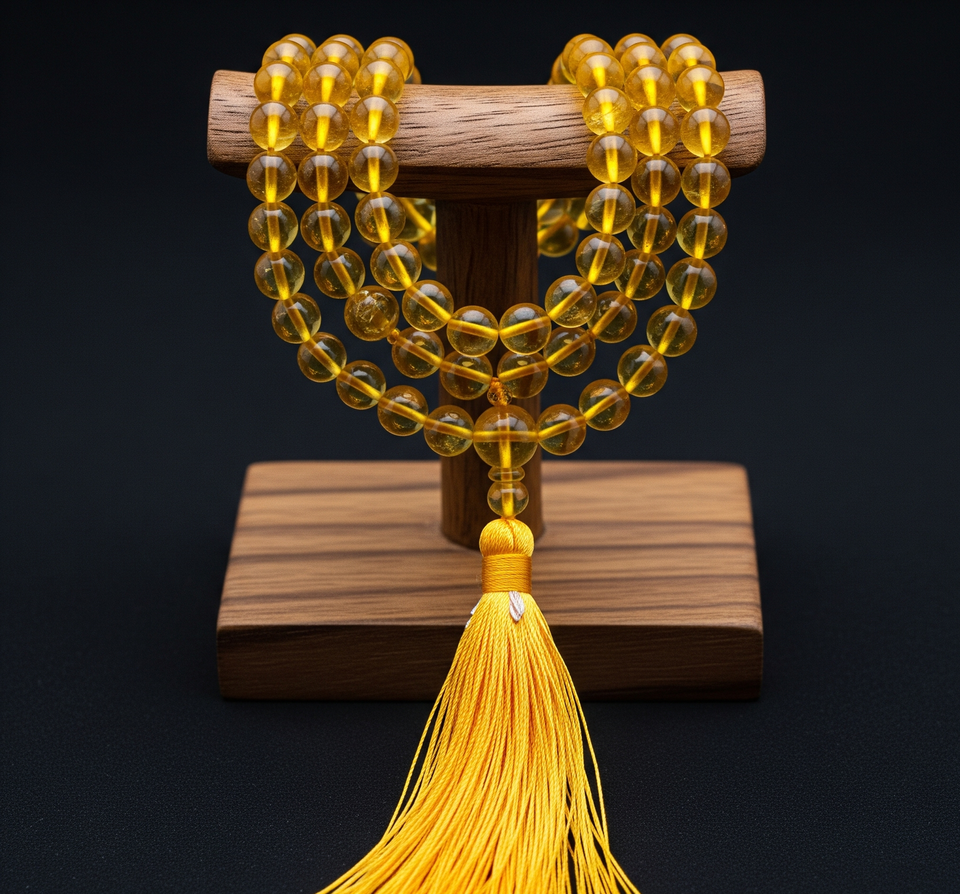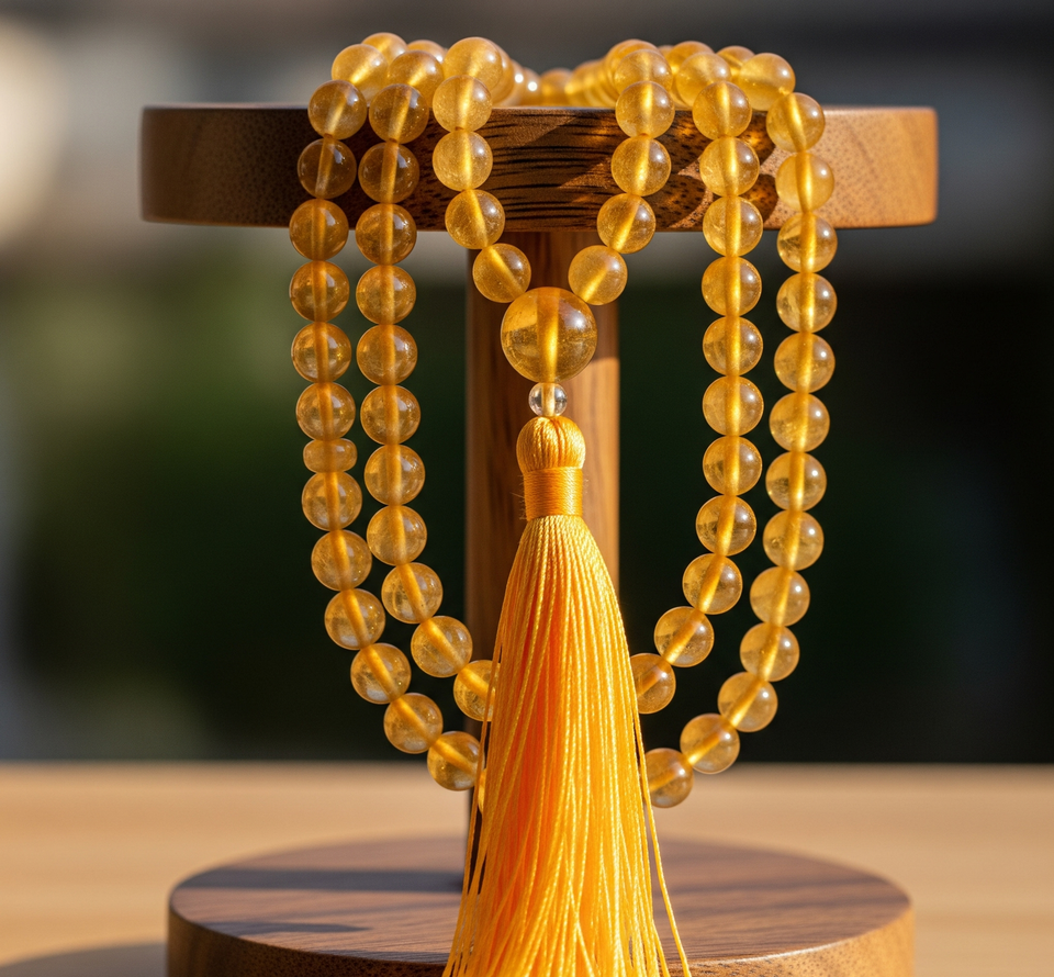 Trending Bohemian 108 Mala Beads Necklace Handcrafted with Natural Citrine Healing Crystal Stone for Buddhism Gift