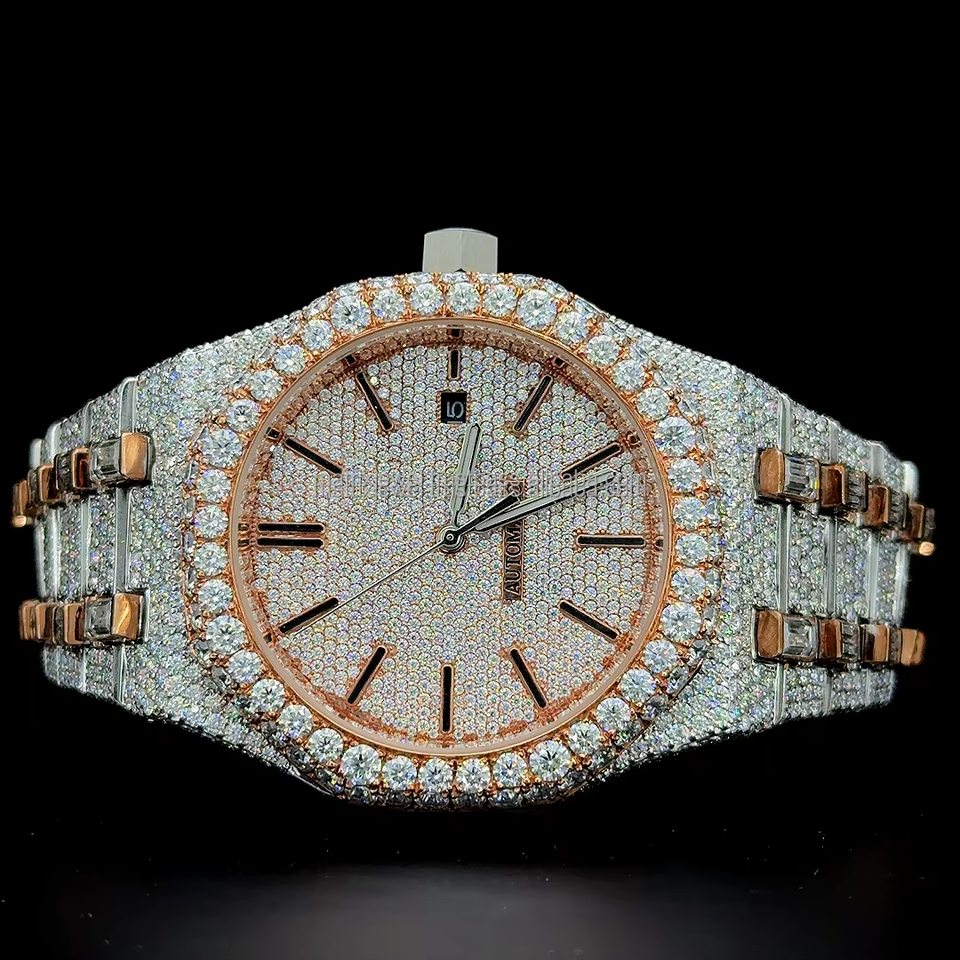 Trending Buss Down Diamond Watch High Quality Iced Out VVS Clarity Moissanite Diamond Studded Gold and Silver Tone Diamond Watch