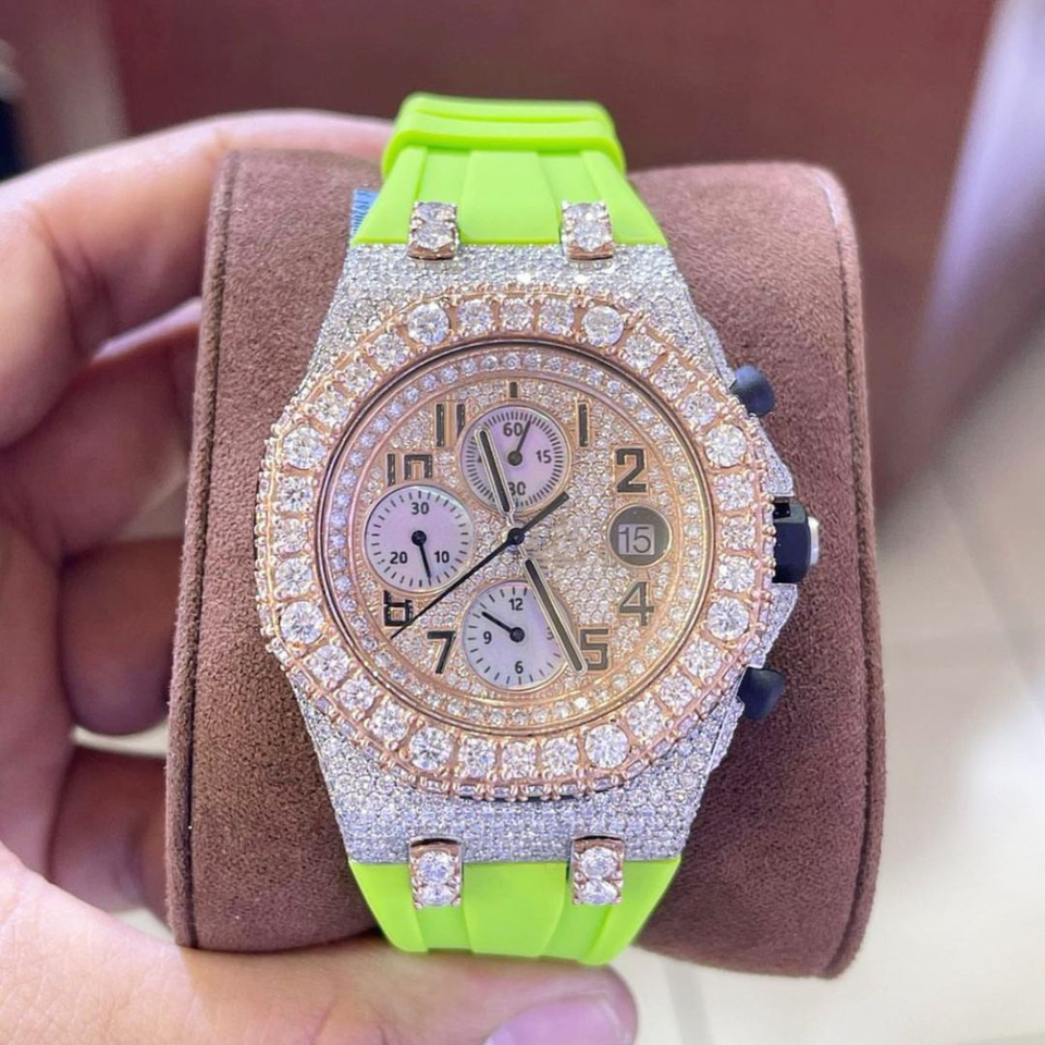 Trending Buss Down Ice Out Lab Grown Diamond Orange Color Silicon Strap Jewelry Hip Hop Personalized Luxury Men's Watch