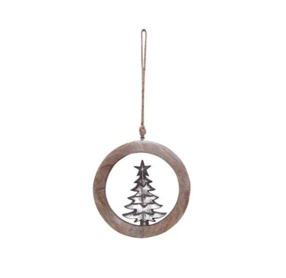 Trending Christmas Tree Silver Finished in Wooden Hanging Ring for Home and Garden Decorative Festival Season Holiday Decoration