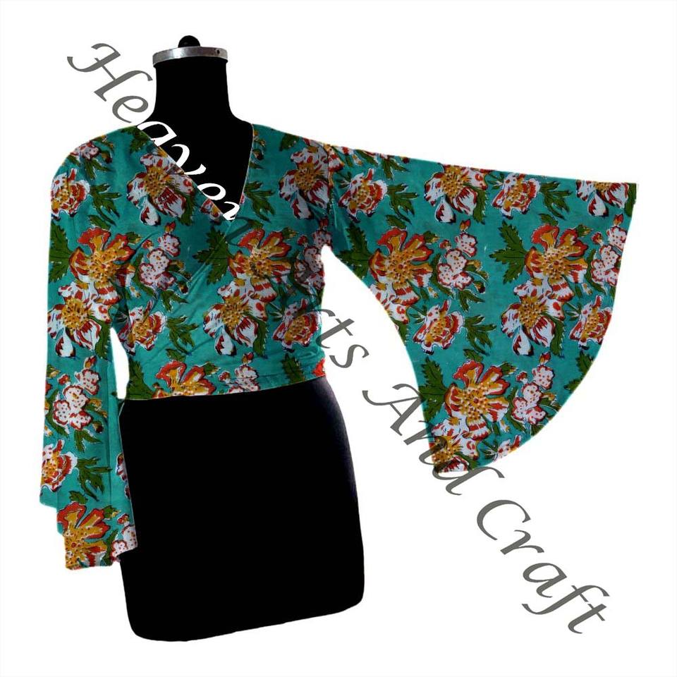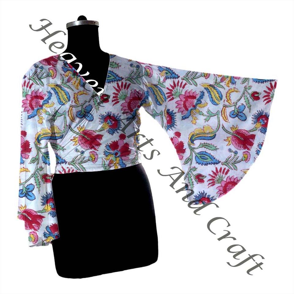 Model Number:Hand Block Print Cotton Tie Tops Bell Sleeves