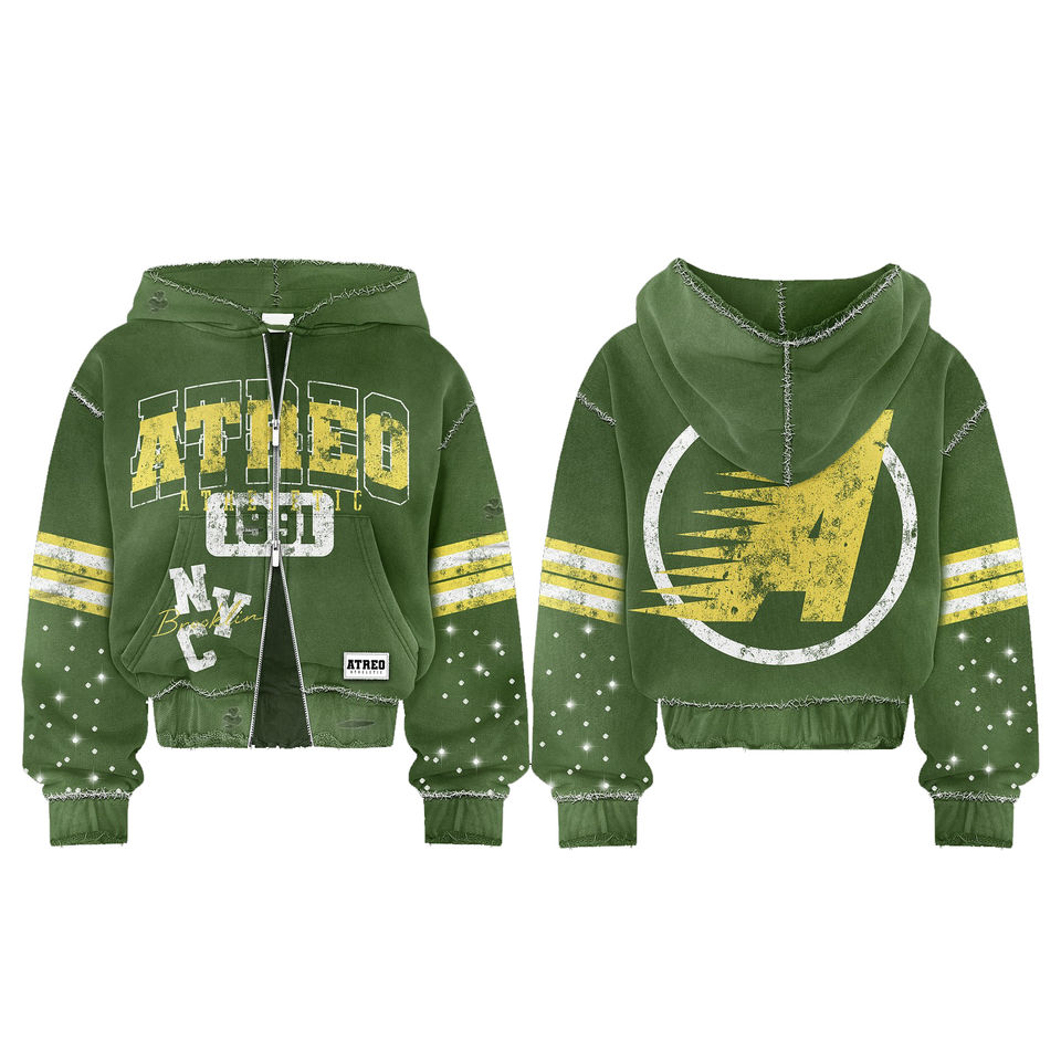 Trending Custom Logo Rhinestone Autumn Hoodie Men Oversized Cropped Acid Wash Zip up Distressed Vintage Sweatpants and Hoodie