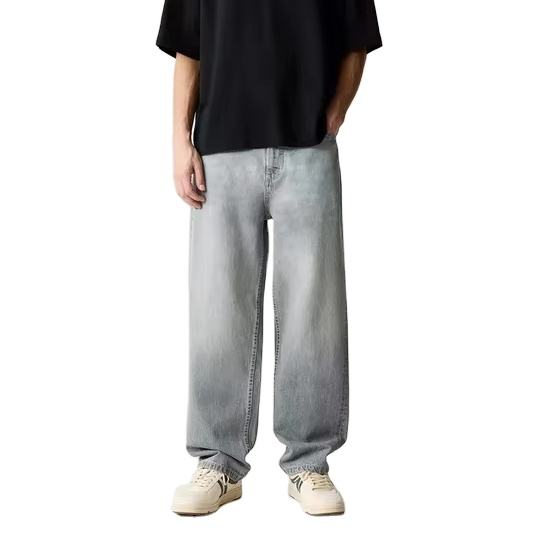Trending Custom Men's P&B Gray Baggy Jeans Loose Baggy Denim Jean Trousers 100% Cotton Oversized Skate Fit Denim Jeans