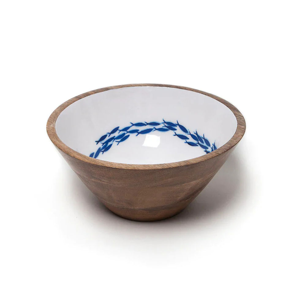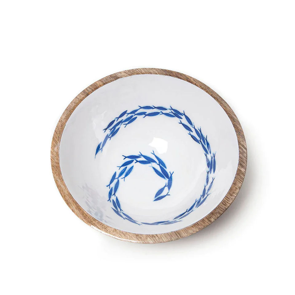 Trending Decor Wooden Serving Bowl for Multipurpose Home & Wedding Dinnerware Food Bowl with Enamel Print White & Blue Color