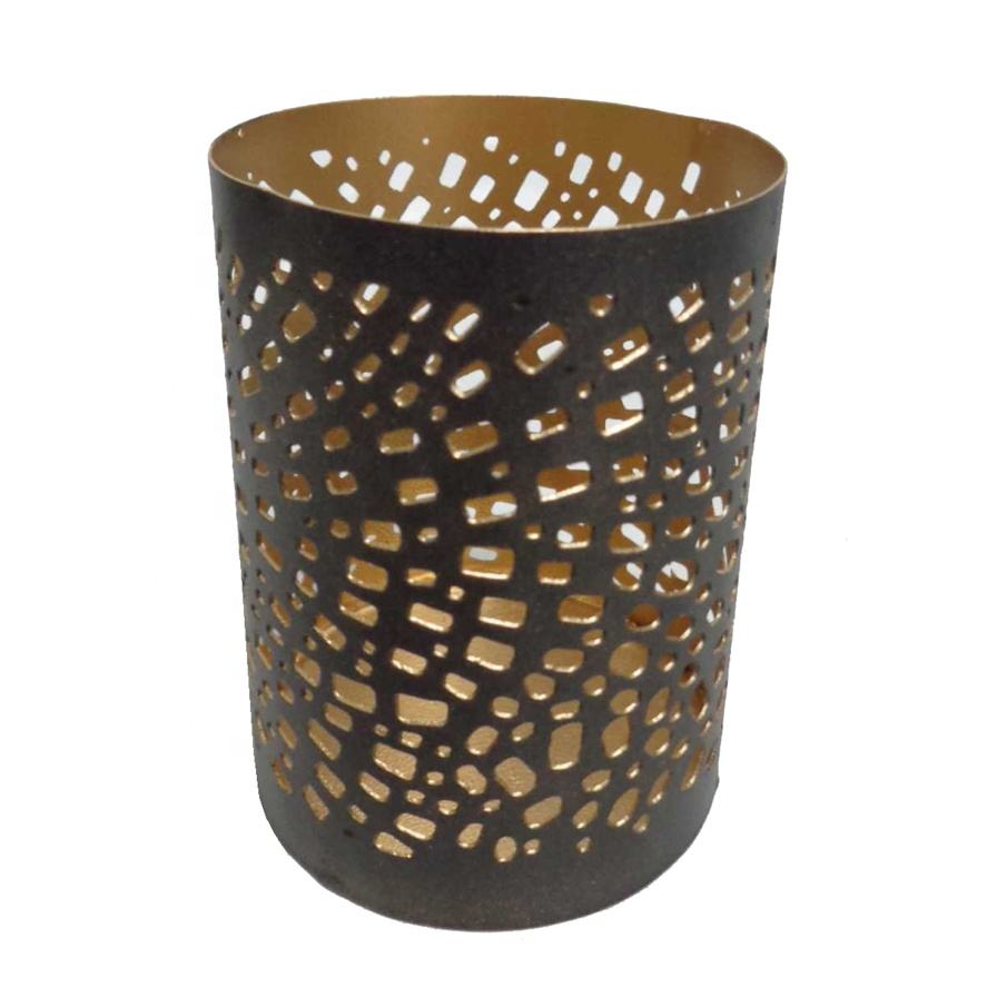 Trending Decorative Dark Black Color Metal Iron Round Shaped Luxury Votive Holder Modern Design Candle Jar Handmade