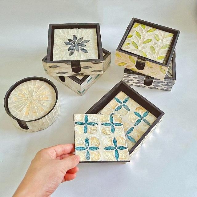 Trending Design Bone Inlay Tea Cup Coaster Bone Inlay Coaster Bone Handicraft Cup Coaster For Home Office Table Protect Cup Mats