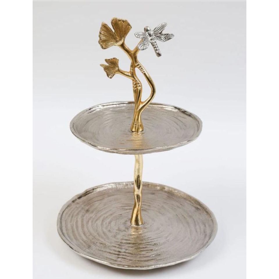 Trending Design Home Kitchen Organizer Cake Serving Stand 3 Tier Aluminium Cake Stand With Gold Leaf Design Cupcake Holder