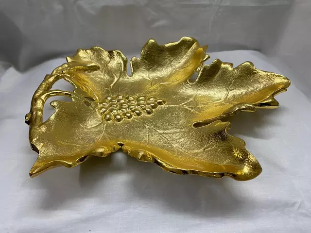 Trending Design Serving Tray Leave Gold Aluminum for Restaurant Dinnerware Hotel home decor Unique design serving tray tabletop