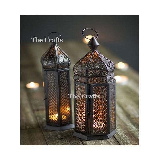 Iron Black Color Lantern Set Of Two Different Size Prime Quality Hanging Lantern For Wedding And Home Decoration Usage