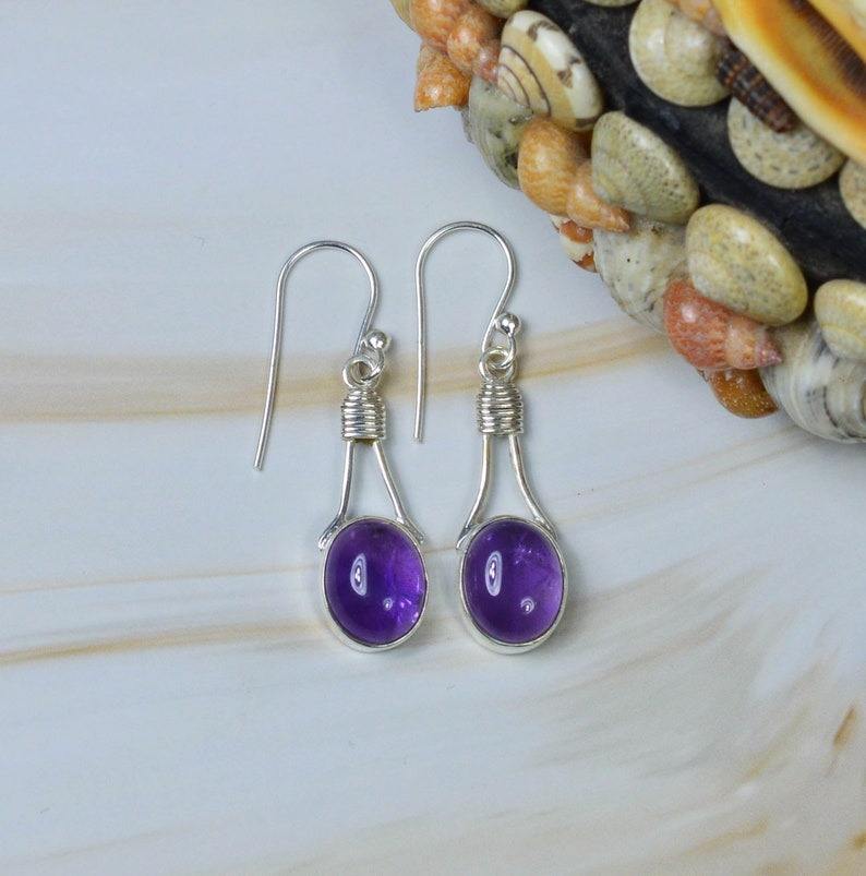 Trending Design Wedding Drop Earrings Amethyst Gemstone 925 Solid Sterling Silver Women's Jewelry