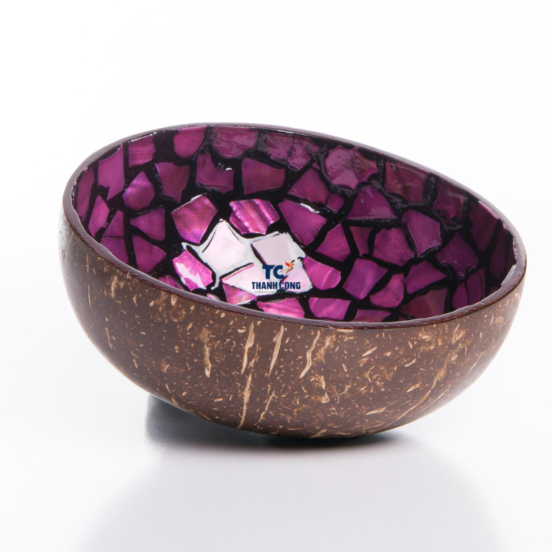 Trending Designs Coconut Lacquered Shell Bowl With Inlaid Mother of Pearl Mosaic