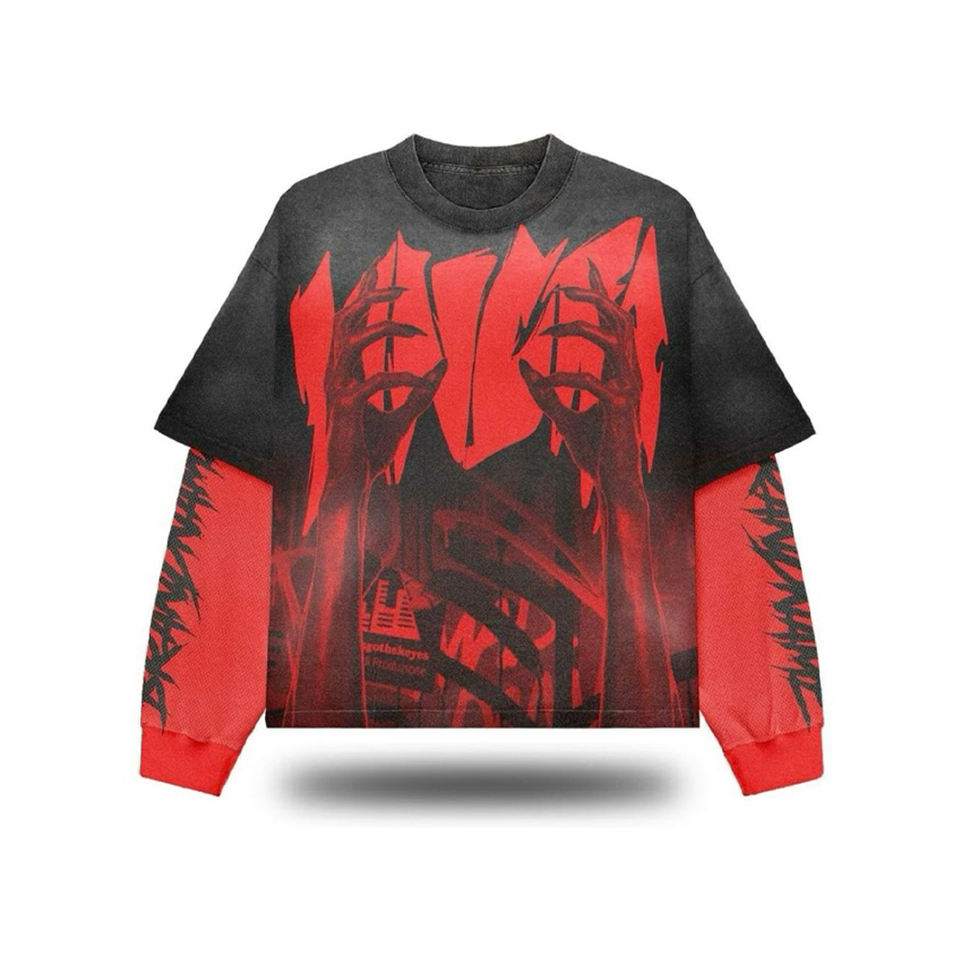 Trending Double Sleeve Cotton T-Shirts Customize Acid Wash DTG Print Men's Shirts