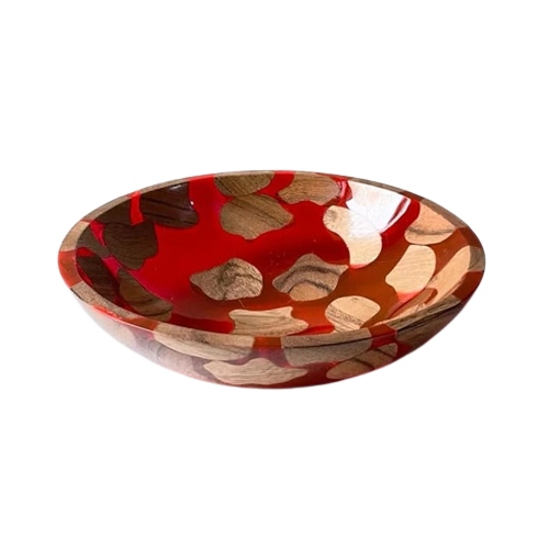 Trending Eco-Friendly Red Resin Acacia Wood Serving Bowl Unique Tableware for Business Dinners Household Business Gifts