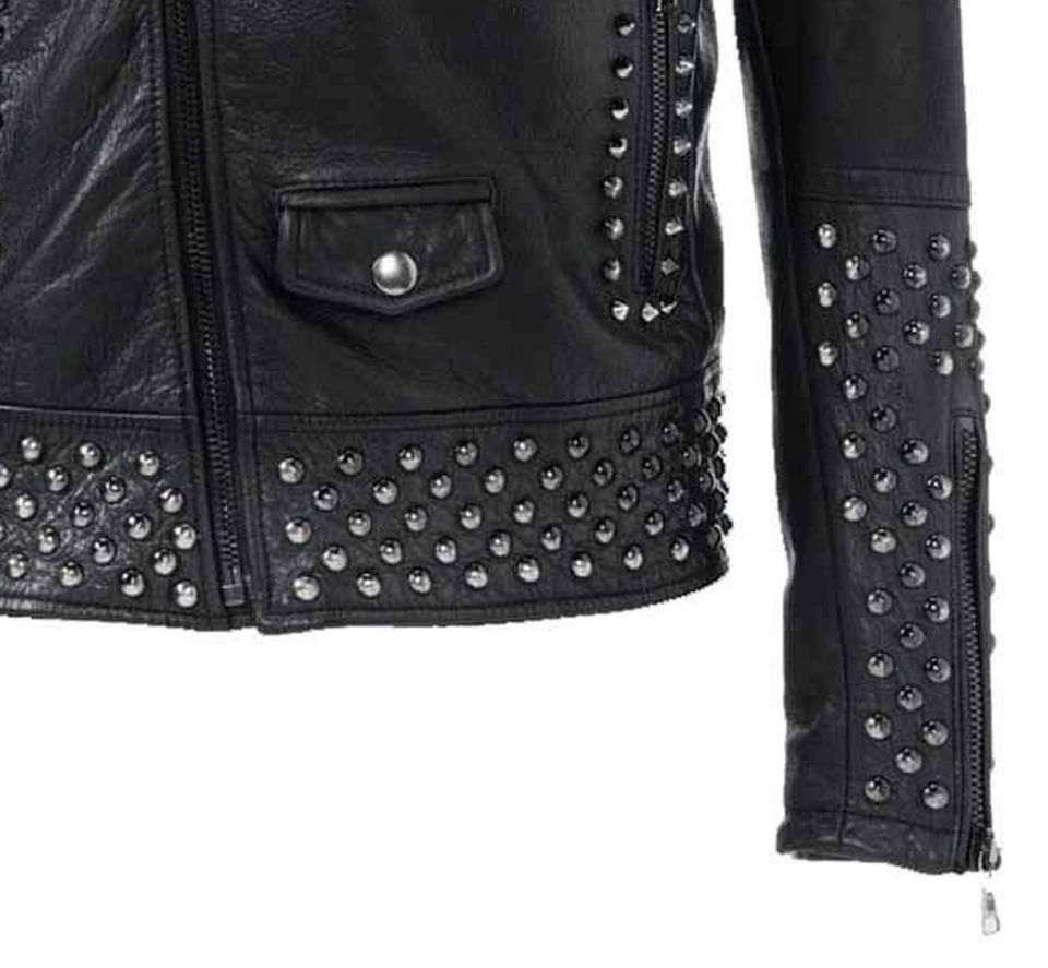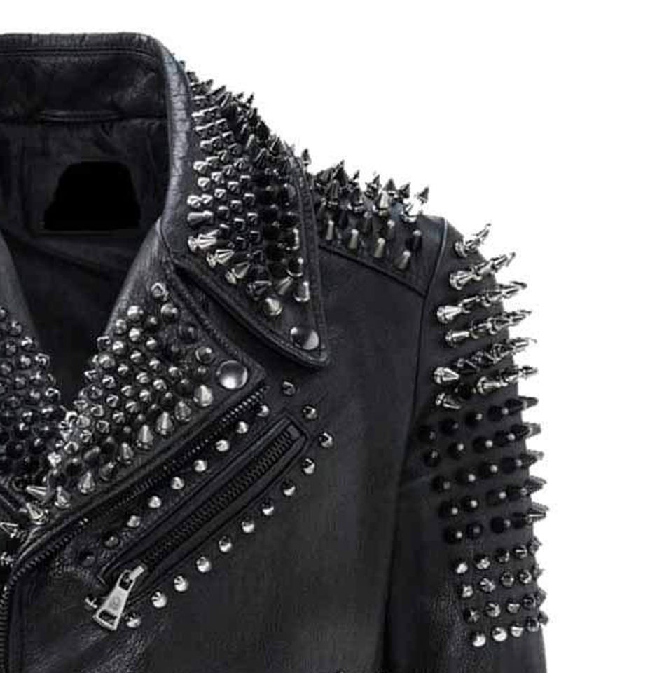 Trending Fashion Men's Black Leather Jacket with Long Spike Rocker Punk Style Studded Men's Leather Jacket for Bikers and Racers