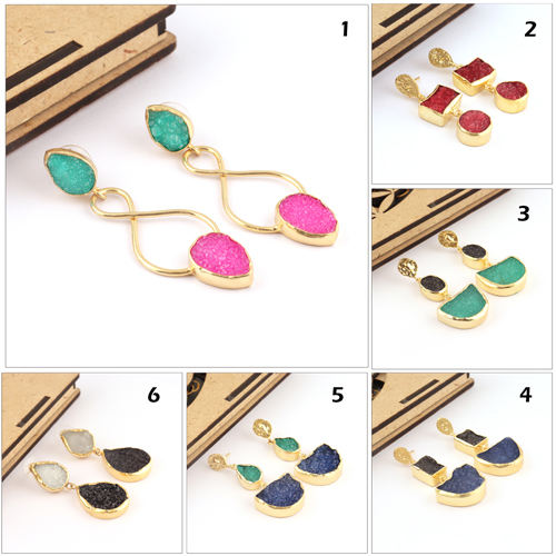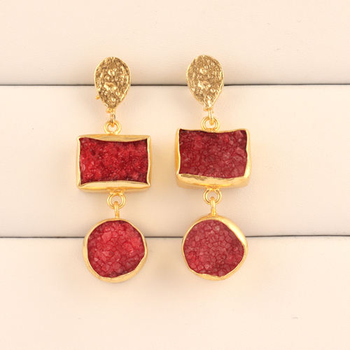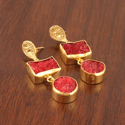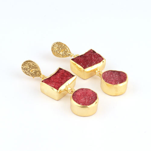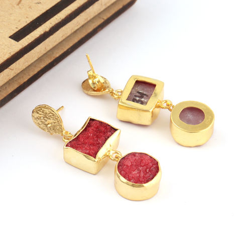 Trending Fashion Natural Red Sugar Druzy Hammer Finished Stud Drop Earring Gold/silver Plated Best Selling Drop Dangle Earring
