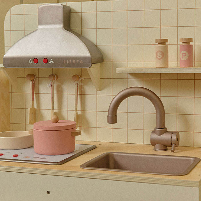 Trending Fiesta Contemporary Wooden Kitchen Set Solid Wood Pretend Latte Cream 700*530*170 Kitchen Food Toys for Kids Ages 0-13