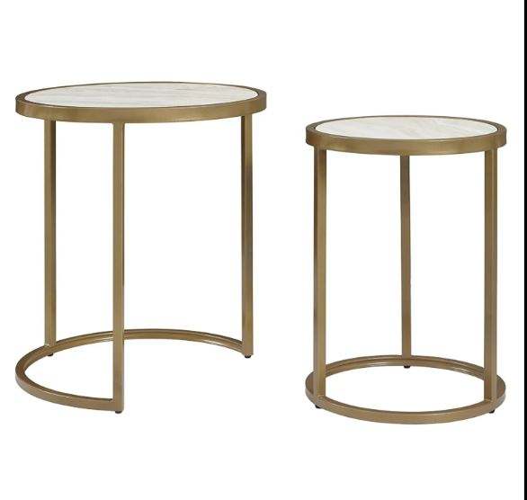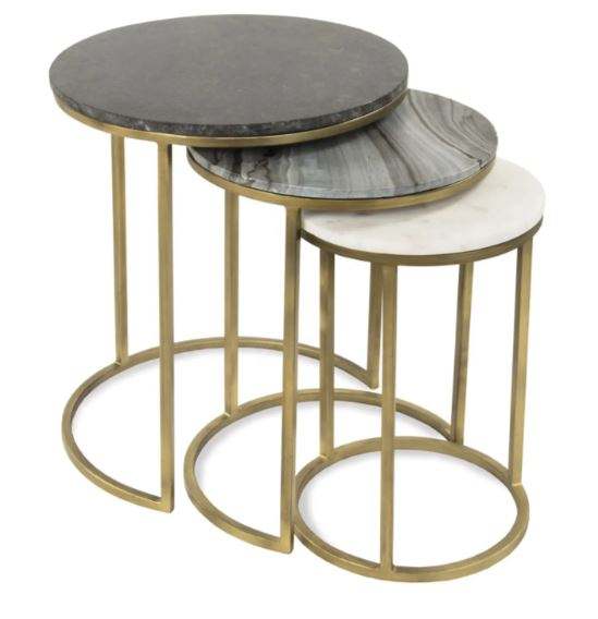 Trending Green and Grey Enamel Side Table Set of 2 in Golden Color Attractive Design Round Top Nesting Table for Sale