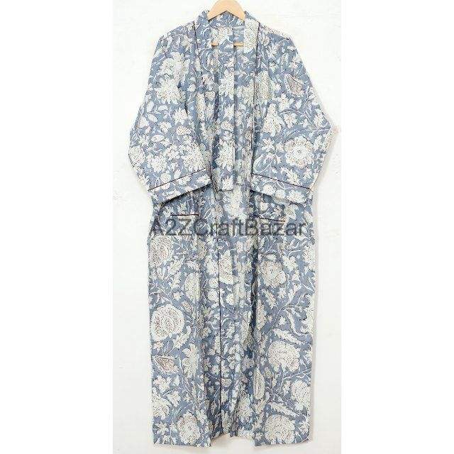 Handmade Cotton Maxi Gown Dress Premium Tiger Printed Floral Pattern Bathrobe Thermal Sleepwear Wholesale for Spring