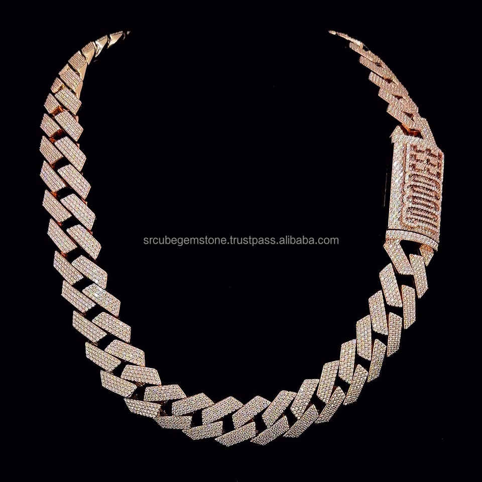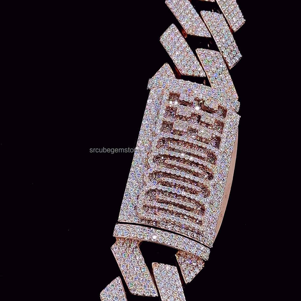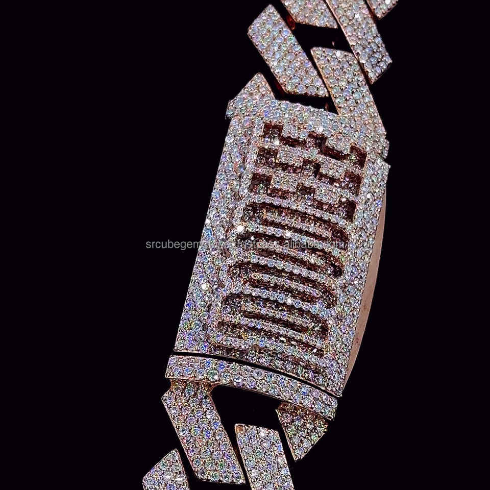 Trending High Quality Customized 26mm Cuban Link Moissanite Diamond Chain Rose Gold Plated Hip Hop Diamond Chain