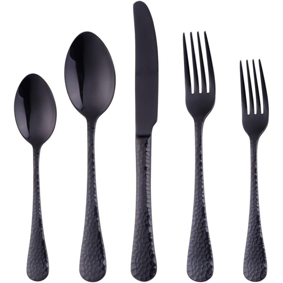 Trending Hot Selling Wedding Stainless Steel Cutlery Knife Fork Spoon Hotel Restaurant Black Flatware Set for Dinnerware Use