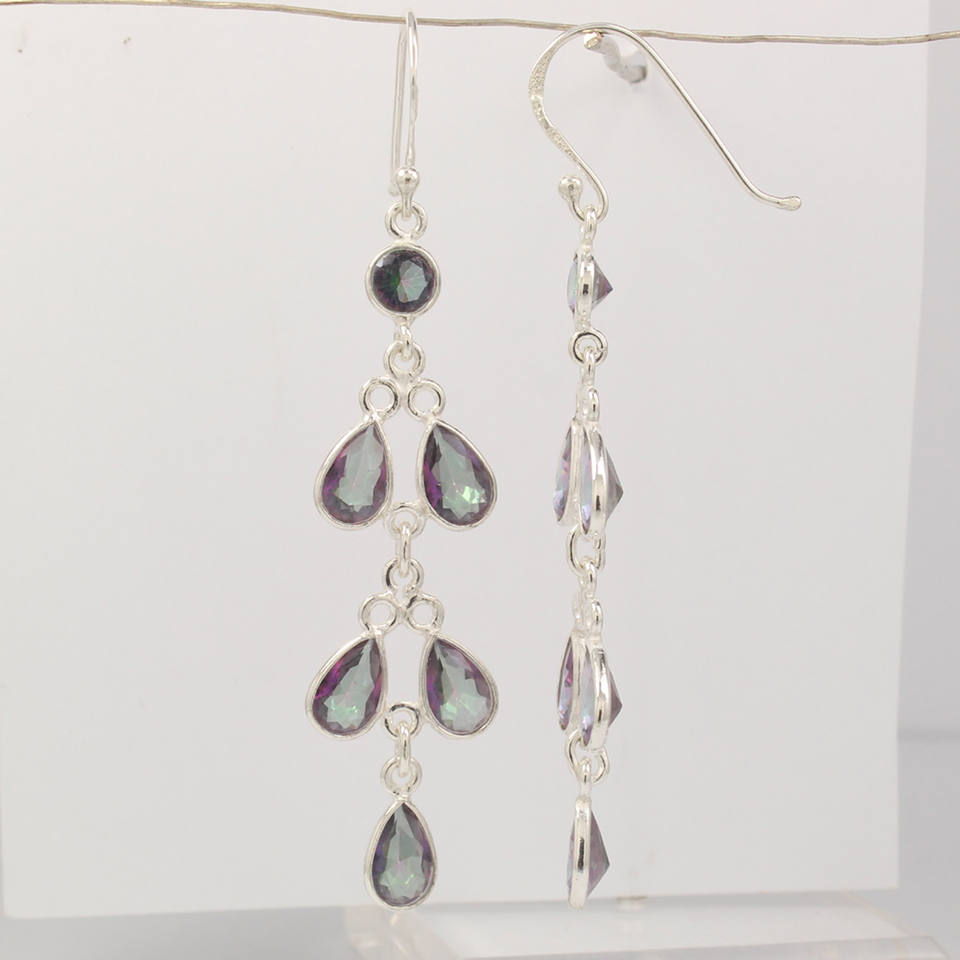 Mystic Quartz Pear Stones 925 Sterling Silver 2.5 Inches Party Wear Designer Bezel Set Earrings Trending Huge Long Earrings
