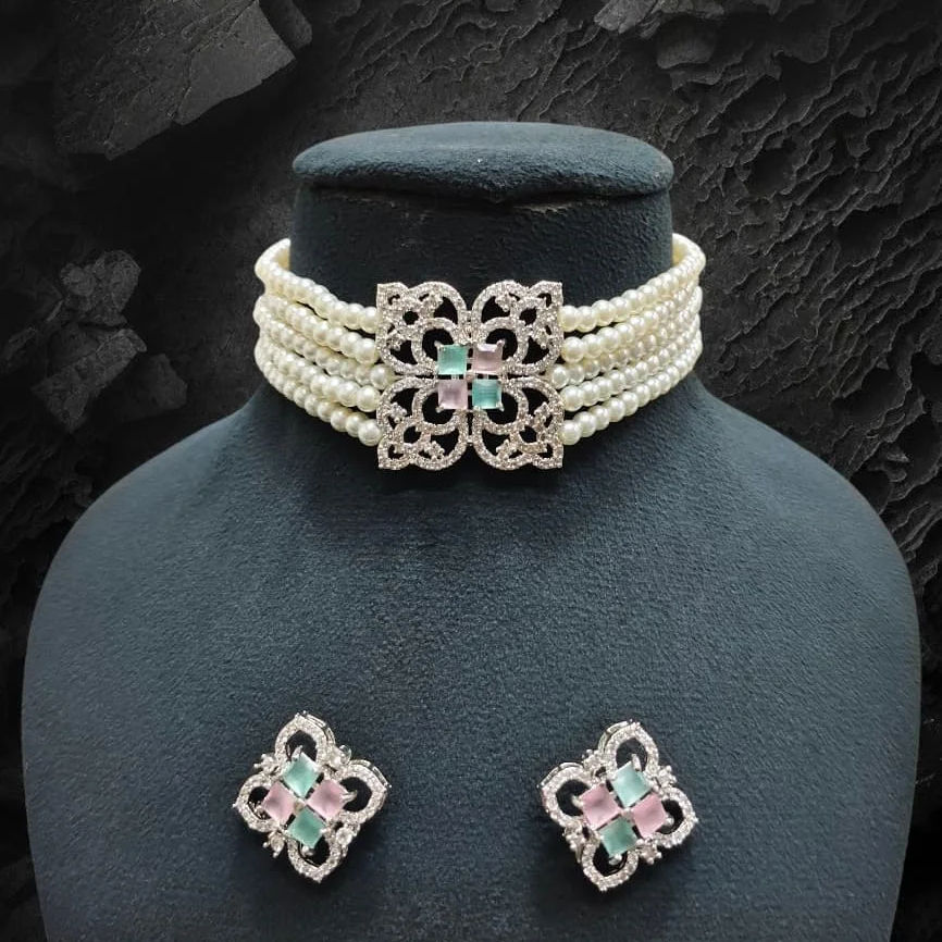 Trending Indian Choker AD Brass Necklace Pendent Set Trend for Women's Wedding Party Wear