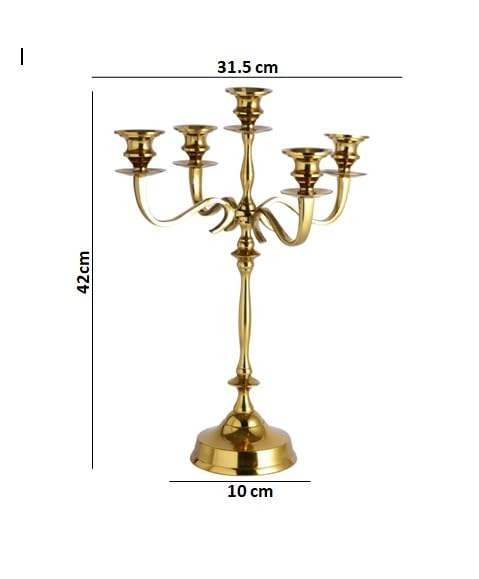 Golden Aluminum 5 Arms Candle Holder Vintage Design Candle Holder For Home Decor Candlestick Wedding Dinning Party