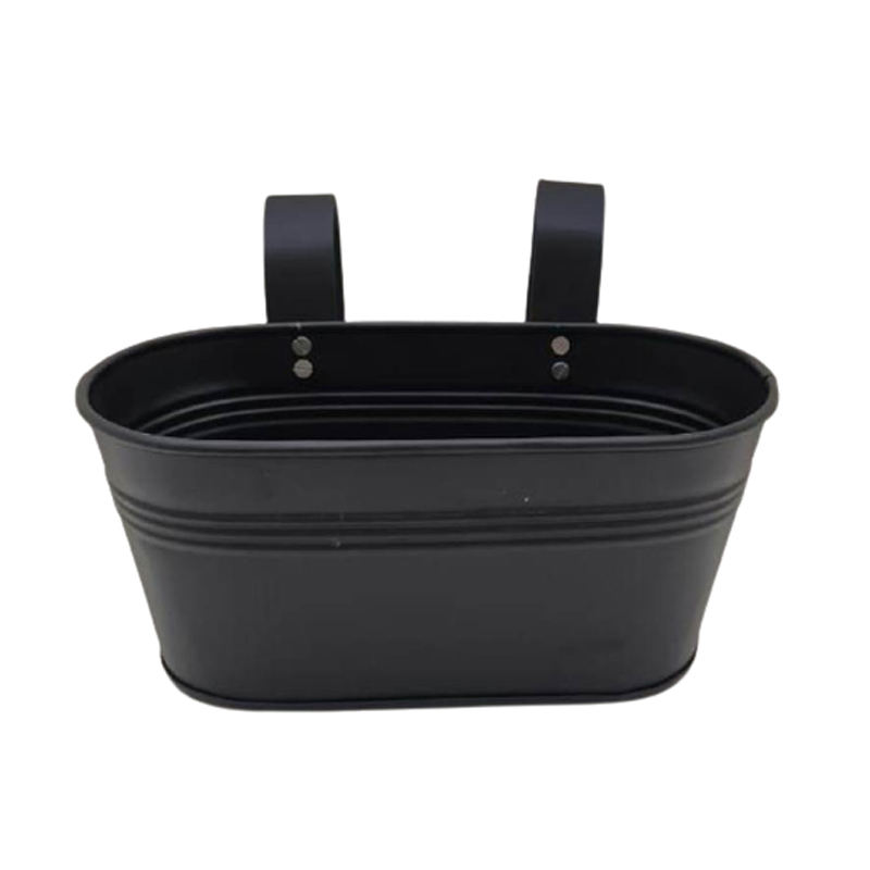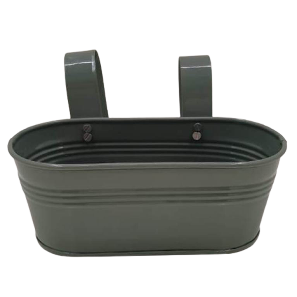Handmade Trending Large Size Iron Oval Railing Hanging Planter 2 Handle Shiny Grass Green Garden Decoration for Home Use