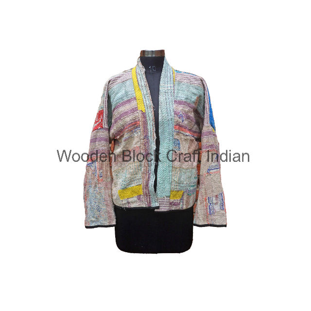 Trending Kantha Long Sleeve Short Jacket For Women Indian Hand Made Patchwork Beautiful Reversible Winter Wear Jacket For Ladies