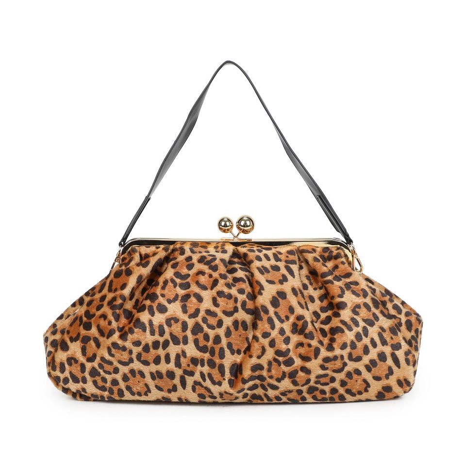 Trending Leopard Print Clutch Purse Women Cheetah Pattern Evening Bag Gold Frame Detachable Black Shoulder Strap