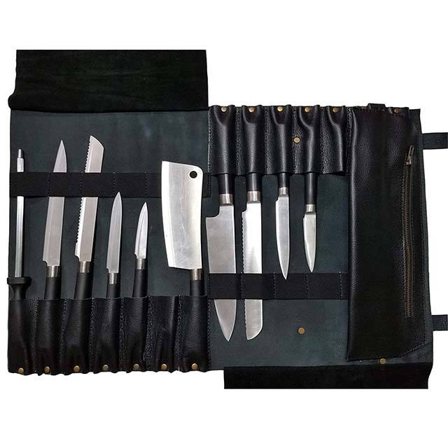 Trending Low Price Unique OEM Rich Grain Leather Knife Roll Tool Bag for Chef Knives and BBQ Bag