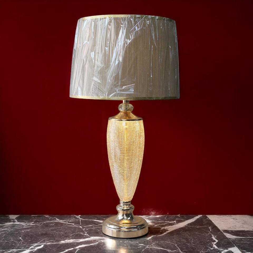 Trending Luxury 1224T Double-Light Glass Cracker Table Lamps AC Electric Power for Living Bedroom and Lounge E27 Bedside Light