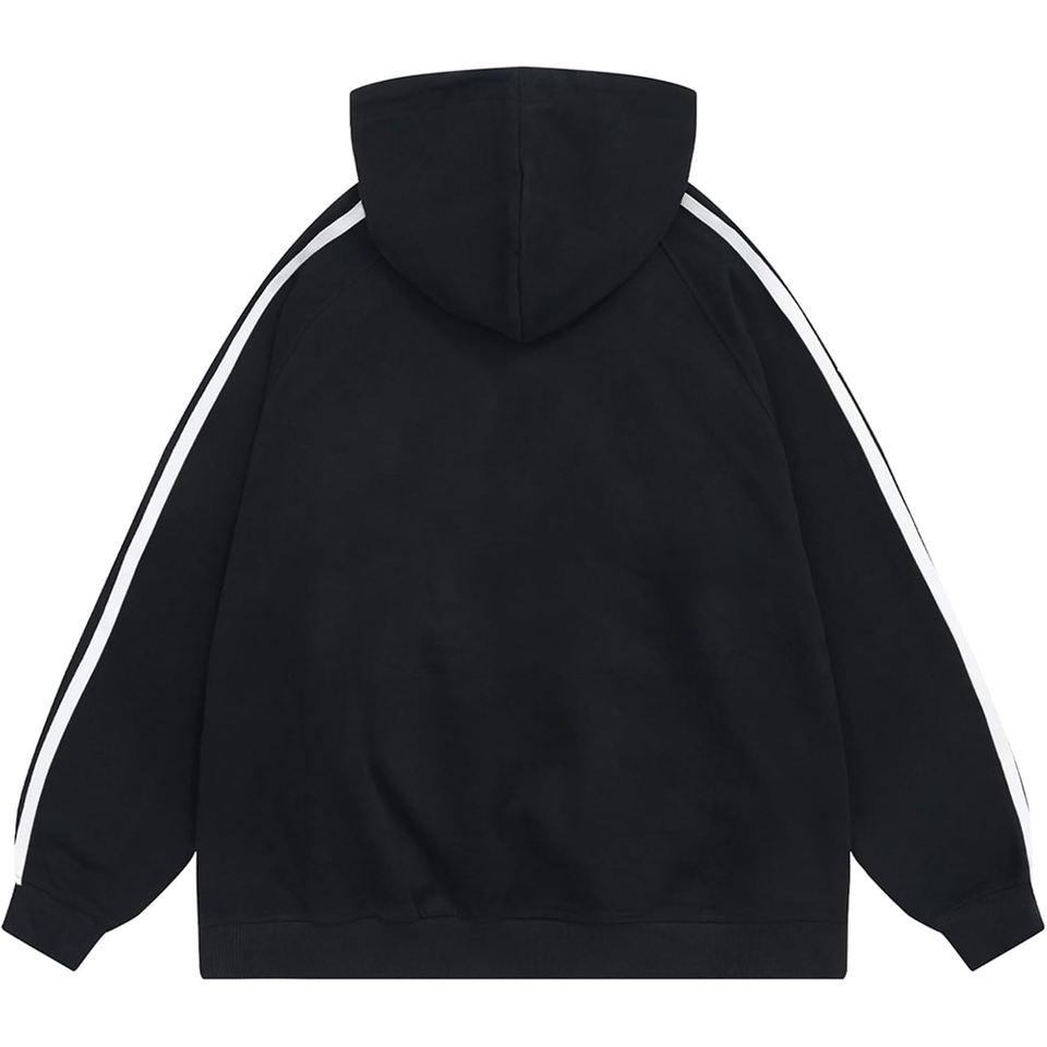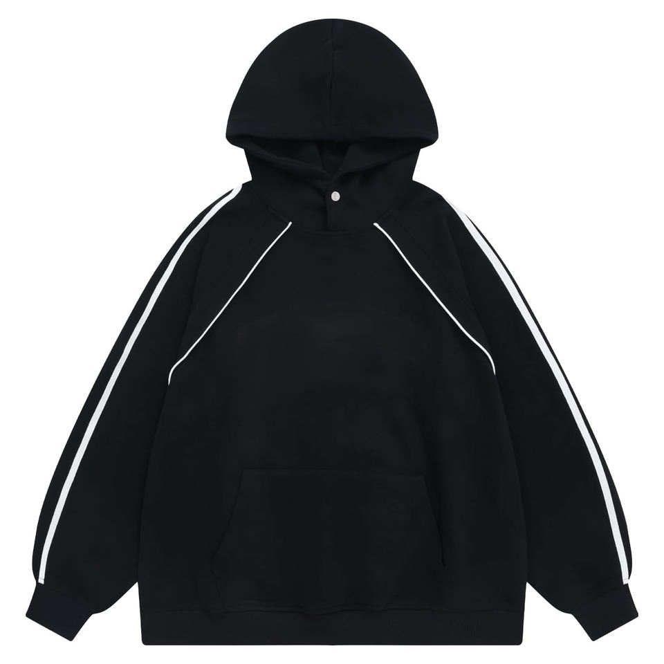 Trending Men's Unisex Black Hoodie with White Stripe Detailing and Front Pocket Casual Streetwear Pullover 100% Cotton Fleece