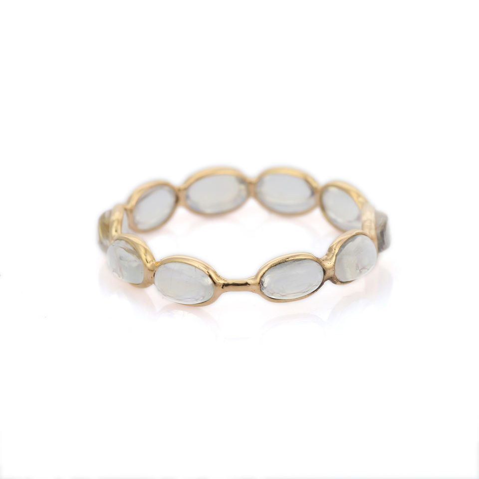 Trending Natural Rainbow Moonstone Eternity Band Ring 18K Yellow Gold Infinity Ring Custom Jewelry Wholesale Products Women