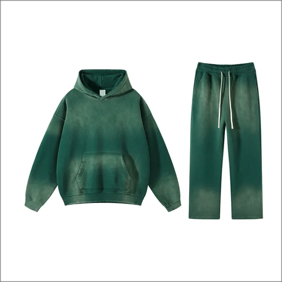 Trending New Wholesale Winter 2-Piece Set Sports Acid Wash Hooded Track Suit Men Sun Faded Regular Fit Zip-Up Hoodie & Trouser