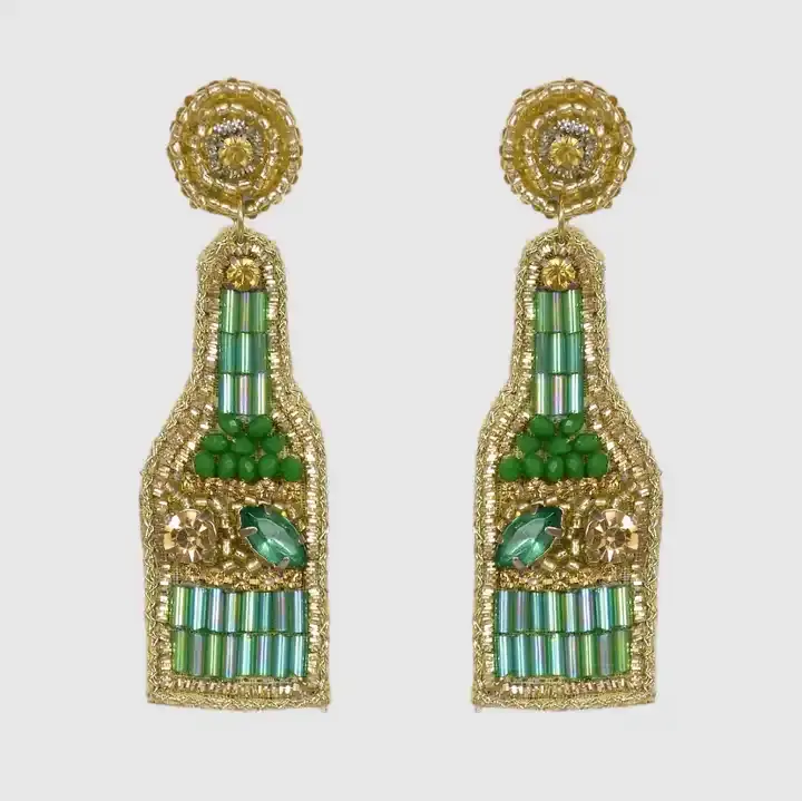 Trending New Women's Stainless Steel Drop Earrings Handmade Beaded Embroidery Statement Style Autumn Fashion From India