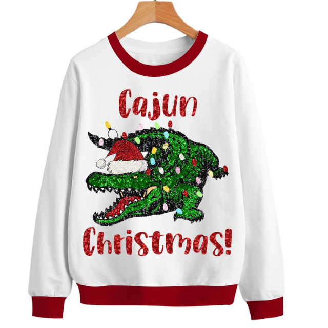 Products Name:Christmas T-DEB on the Bayou Women Sequin Motifs Sweatshirts