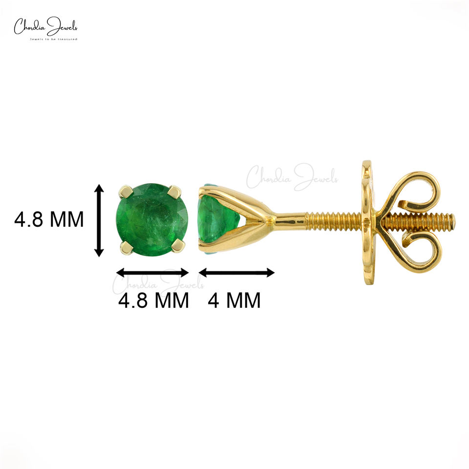 Trending Product to Sell Natural 5mm Zambian Emerald Stud Earring With 18k Fine Yellow Gold Screw Back Earrings For Wedding Gift