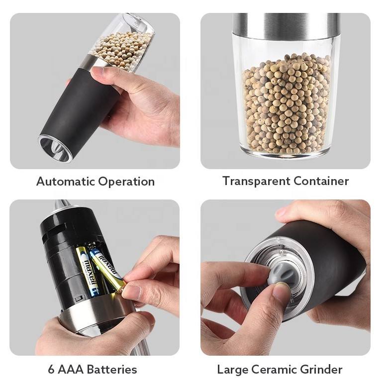 Trending Products 2025 Stainless Steel Gravity Electric Salt and Pepper Grinder Set with Blue LED Light Adjustable Coarseness