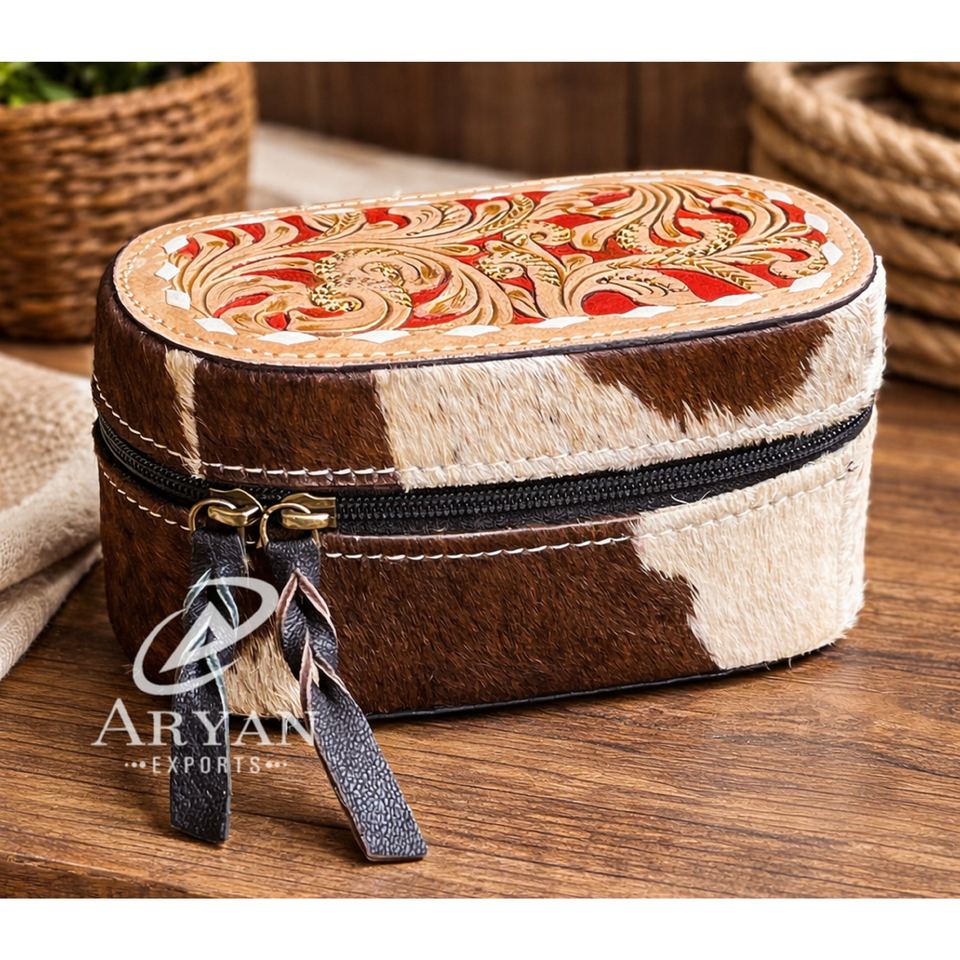 Hand Tooled Cowhide Leather Small Jewelry Case