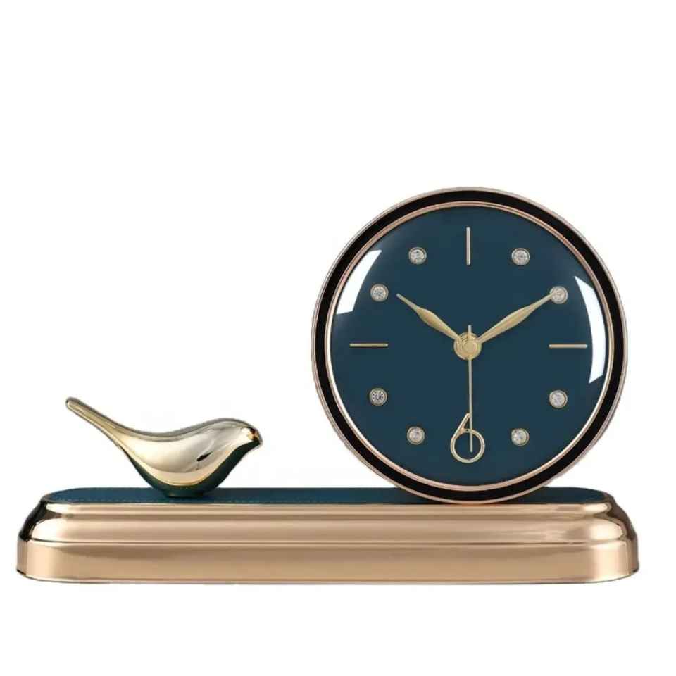 Trending Rectangular Gold Frame Square Face Roman Numerals Polished Metallic Finish Mechanical Wave Movement Desk Clock