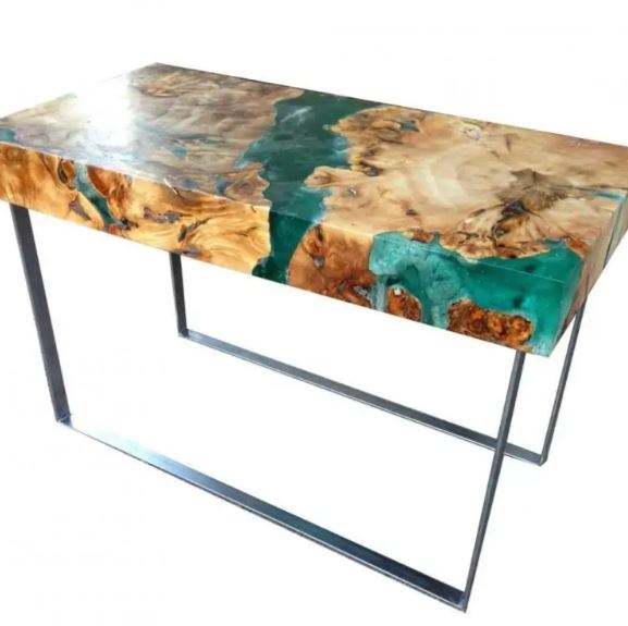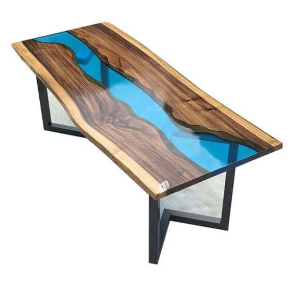 Trending Resin Solid Wood Round Top Coffee Table Live Edge River Resin Table Contemporary Design Metal Frame Side Table for Home