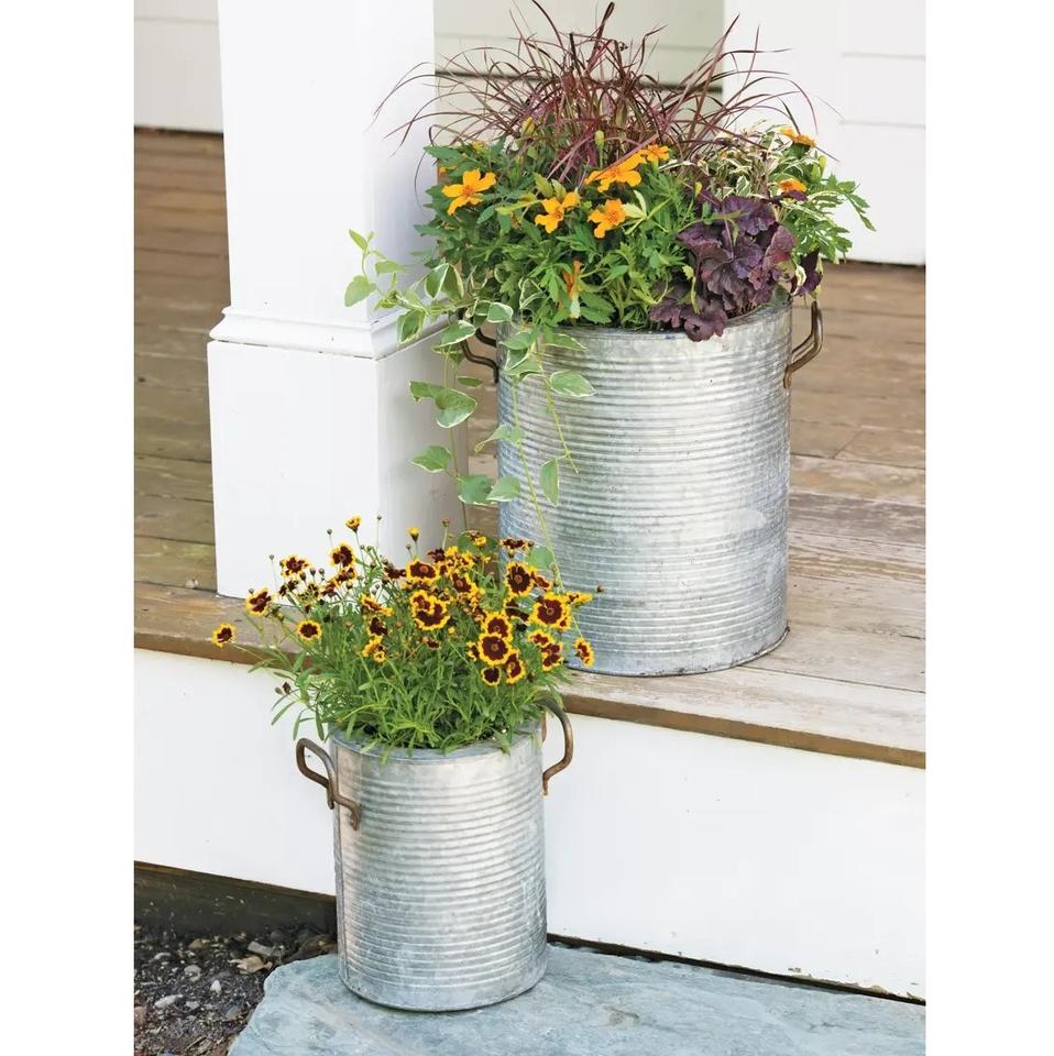 Trending Round Shape Galvanized Metal Flower Planter Pot for Garden Home Patio Office Use Flower Pots & Planters