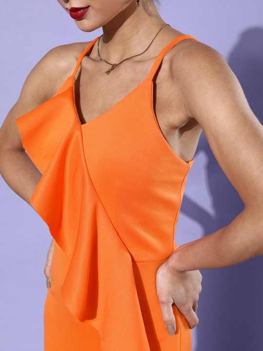 Trending Satin Midi Dress with Empire Waist & Straps Formal & Party Collection