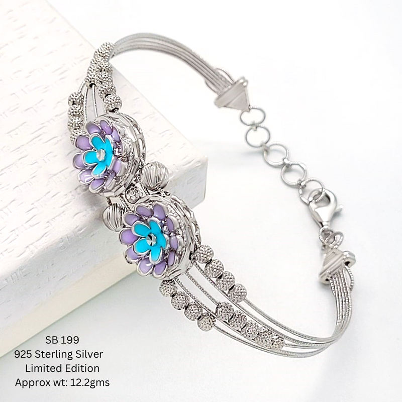 Trending Silver Jewellery 92.5 Purity Lavender Sky Blue Enamel Flower Bracelet 12.2 Gms Hot Sale Fashion Silver Kada Bracelet