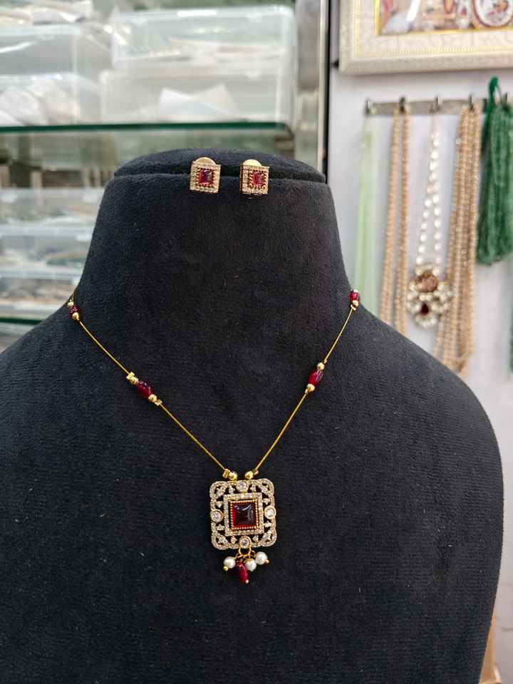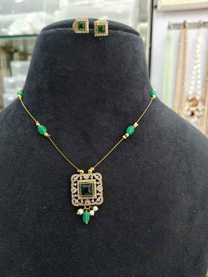 Trending Sparkling pendant Indian Jewellery set with same matching earrings and pendant chain for all function and party