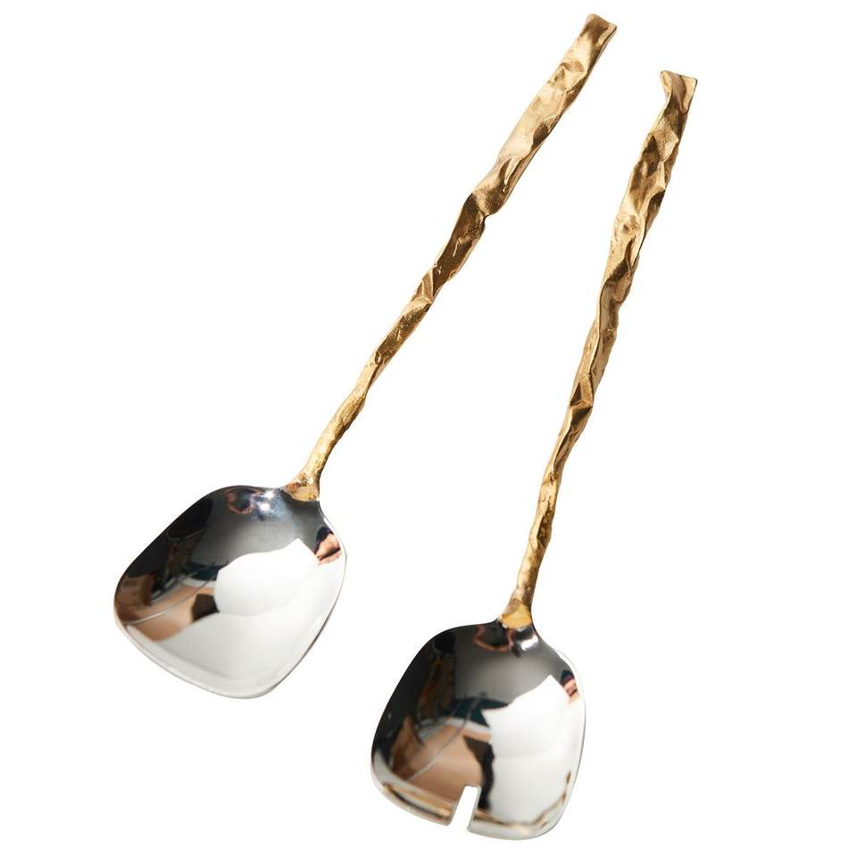 Trending Stainless Steel Gold Salad Server With Round Wooden Handmade Handle for Restaurants & Hotels Usage Bulk