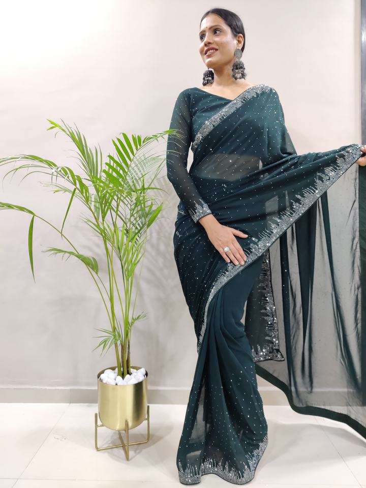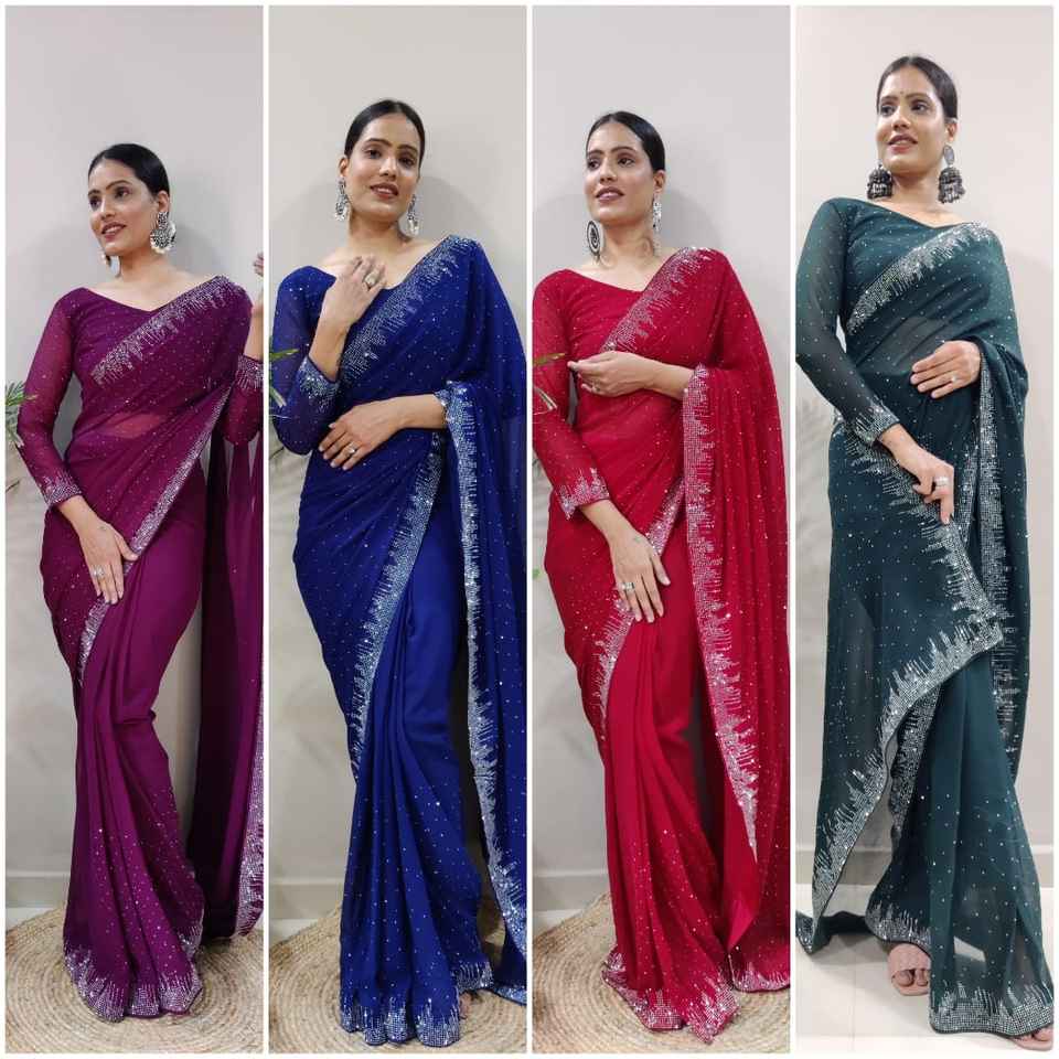 Trending Style New Fancy Ready To Wear georgette Silk Saree With siroski Embroidery Work And Full Stitched Blouse