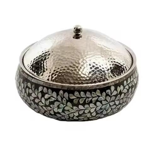 Trending Style New Hot Pot Insulated Metal With Golden Flower Design Handle Knob Food Warmer Hot Pot Chafing Dish Buffet